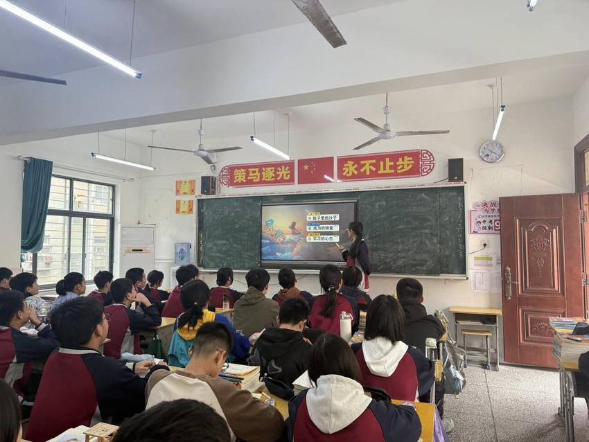 在“成长锦囊”环节,陈馨桐通过庞众望、马龙等励志事例,以及认知差异对成长影响的案例分析,强调了“态度、行动、坚持”三大关键要素。她建议同学们以平稳心态投入学习,善用时间、总结经验,全力以赴。