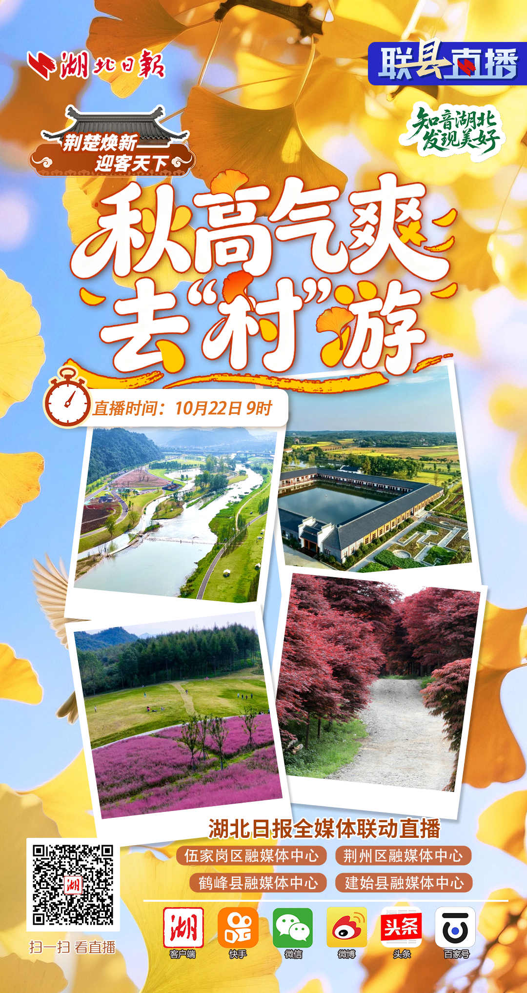 10月22日早上9时,湖北日报联合伍家岗区融媒体中心、荆州区融媒体中心、鹤峰县融媒体中心和建始县融媒体中心开展《荆楚焕新 迎客天下・秋高气爽去“村”游②》直播。
