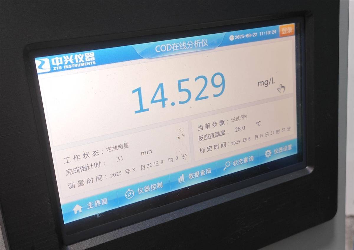产业园污水处理厂出口处COD数值。湖北日报全媒记者 何辉 摄
