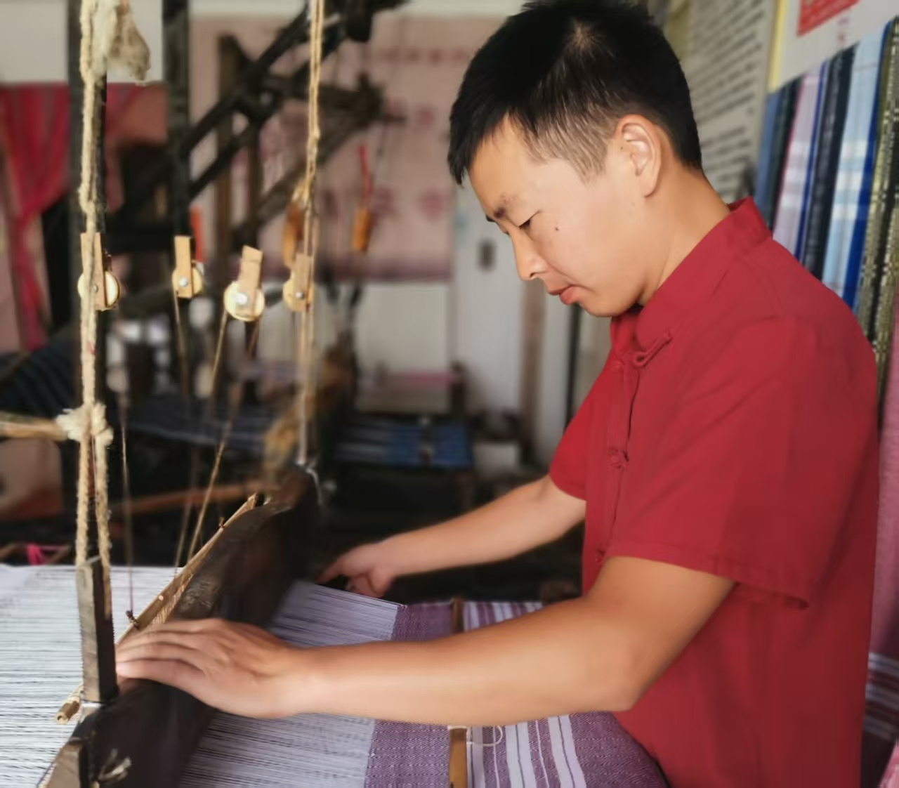 此次获评的省工艺美术大师的省级非遗项目“红安大布传统纺织技艺”传承人陶文成,自幼便浸润在纺织技艺的文化氛围中,2015年返乡后师从母亲系统研习技艺,多年来始终坚守传承初心。2021年,他牵头成立公司及多个非遗工坊、培训室,以“技艺助农”为抓手开展免费技能培训,助力乡村群众实现就业增收;同时积极推动非遗进校园、深化校企合作,先后获评多项非遗传承基地荣誉,更荣获“中国纺织非遗新青年”称号。2024年,陶文成携手设计师周锦,将红安大布这一传统“土布”创新转化为国风时尚服饰,惊艳亮相北京国际时装周,彻底打破大众对传统纺织面料的固有认知,为非遗走向国际舞台搭建了重要桥梁,其参赛作品《白果花围巾》《红安大布围巾》《“布布生辉”》凭借兼具传统韵味与现代审美的设计,赢得评委一致好评。