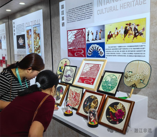 此次参展,潜江非遗团队精心打造特色展区,将传统手工艺与地域文化深度融合。展台上,麦秆画用细腻的麦秆肌理还原潜江荷塘的灵动景致;剪纸作品中既有小龙虾等地域符号,也有传统吉祥纹样;面塑摆件则以鲜活造型再现民俗场景。这些作品不仅展现了非遗传承人的精湛技艺,更承载着潜江深厚的历史文化底蕴,吸引众多国内外参观者驻足观赏、拍照留念,不少人还主动询问非遗技艺的传承故事与制作细节。