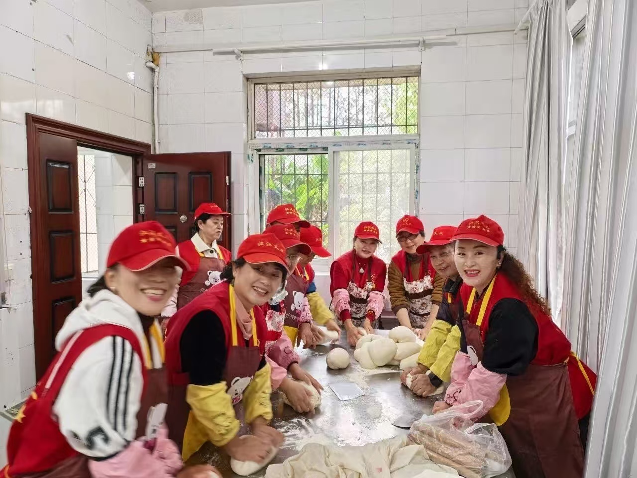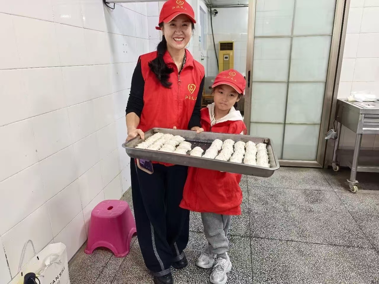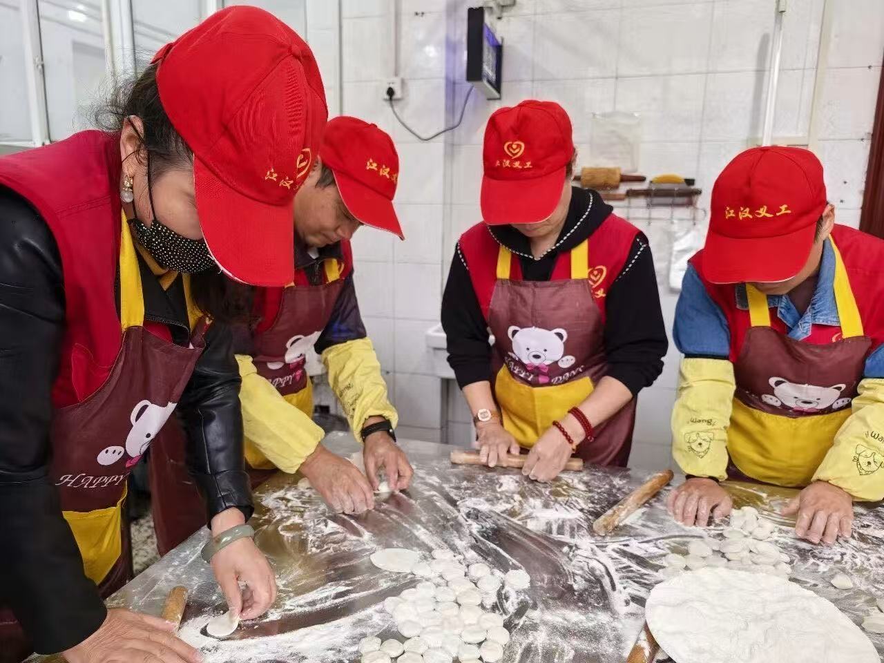 “老吾老以及人之老”,这份孝心也融入了热气腾腾的饭菜之中。在托老中心的食堂里,另一部分志愿者正有条不紊地忙碌着,他们切菜、剁肉、和面、擀皮,动作麻利地包着一个个饱含爱意的饺子。当一碗碗香气四溢的饺子端到老人们面前时,他们品尝到的不仅是美味,更是志愿者浓浓的敬老真情。