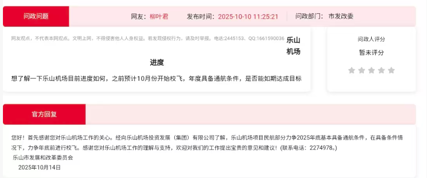 据海棠论坛(乐山市官方问政平台)消息,近日乐山市发改委就乐山机场建设进展一事作出回应:在具备条件的情况下,乐山机场力争年底前进行校飞。此前乐山机场的相关报道称,计划今年7月至12月依次开展校飞、竣工验收、试飞、行业验收等关键环节,年底前具备通航条件,现在看来进度稍有落后。待乐山机场通过校飞后,完成上述建设验收流程仍需一定周期,乐山机场最快预计明年实现通航。不过,由于乐山机场属军民合用性质,具体开航时间仍存在不确定性,最终需以官方发布的正式通知为准。