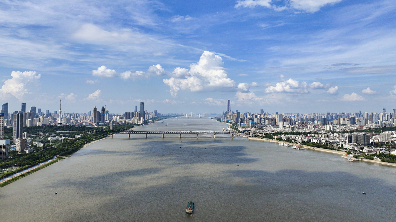 蓝天白云,极目楚天舒,武汉两江四岸,大气磅礴。记者胡冬冬 摄
