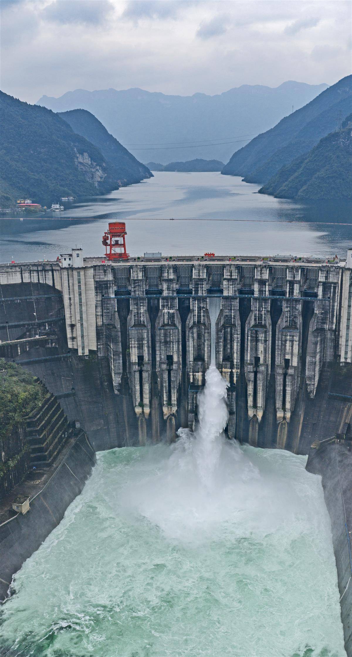 受流域降雨和上游水库来水影响,隔河岩库水位持续上涨,10月22日05时30分开闸泄洪,水库出库流量(含发电)不超过2000立方米每秒。 这是自2016年以来,隔河岩水库首次非汛期泄洪。当地提请龙舟坪、磨市等乡镇及相关涉水项目单位迅速做好泄洪提示和沿江巡查,组织江边人员撤离,加固船舶设施锚定,强化岸线码头管控,确保泄洪安全和人员生命财产安全。(湖北日报全媒记者 刘曙松 通讯员 覃丹 摄)