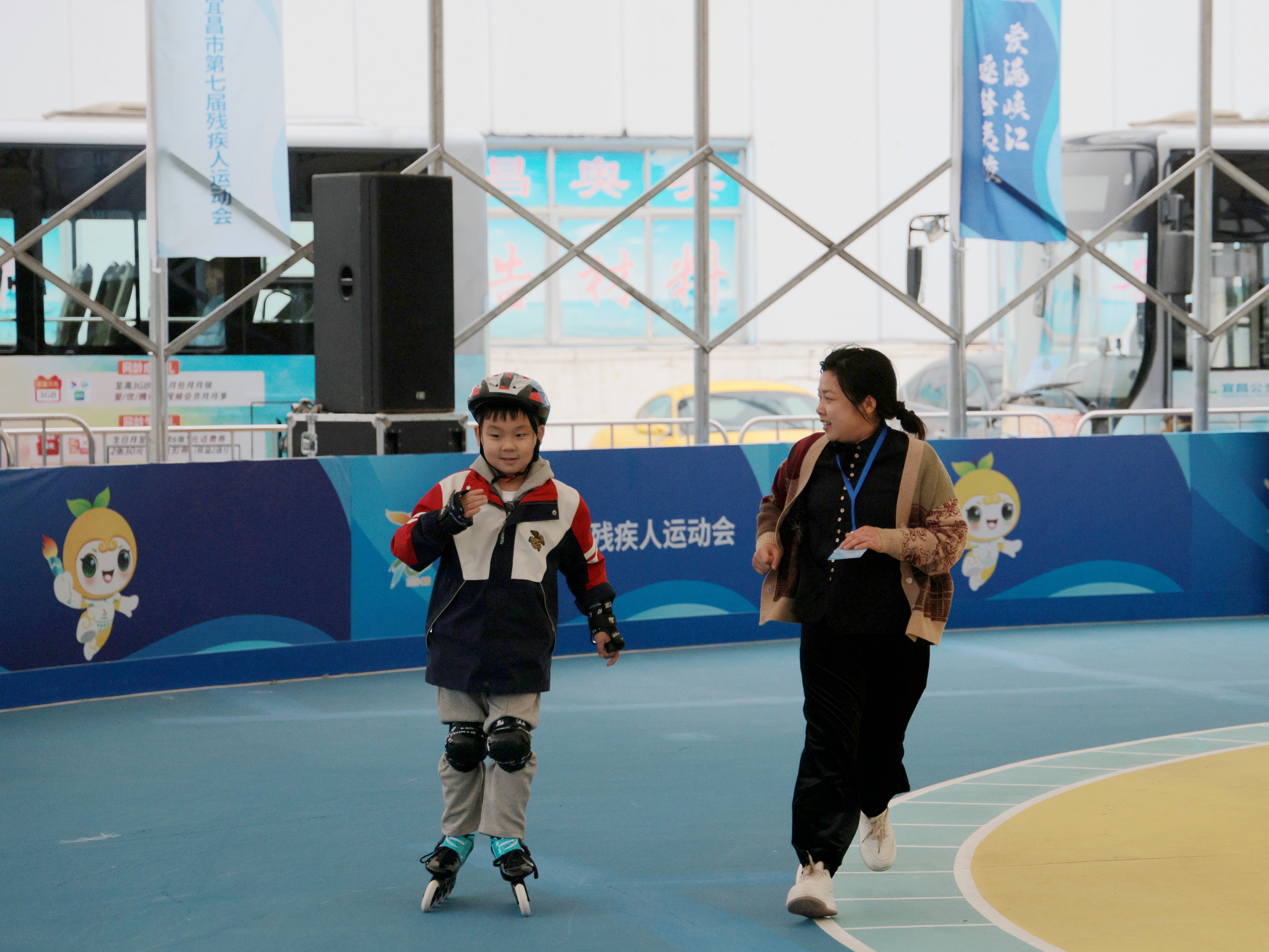 湖北日报客户端讯(通讯员彭宇、汪鹏)10月21日,宜昌市第七届残疾人运动会特奥轮滑比赛在圣冰体育轮滑中心圆满落幕。这是一场速度与激情的较量,更是一次梦想与勇气的绽放。来自全市9支县市区代表队的小选手们竞逐赛场,共产生了34枚金牌。他们用汗水和笑容,赢得了全场最热烈的喝彩。