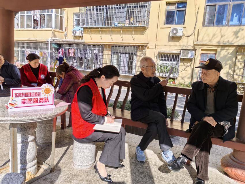 10月22日,由东风路街道新时代文明实践所指导,东风路街道东风有理志愿服务队宣讲员、康乐社区党委书记赵锁梅,在船机厂小区议事长廊开展了一场特别的“理论宣讲+居民议事”活动。
