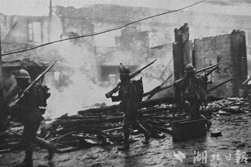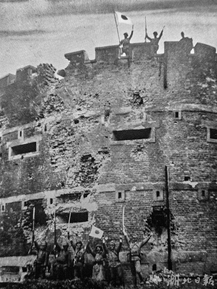 1938年10月26日,日军随军记者拍摄的侵华日军从宾阳门(现大东门)突入武昌城内。【图片由湖北日报全媒记者何宇欣扫描自日本于昭和十三年(1938年)十一月二十日印刷的世界画报】
