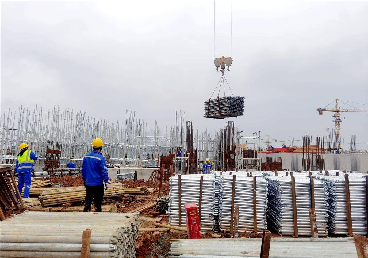 10月18日,在保康县兴发保谷磷化工产业园施工现场,塔吊林立,货车穿梭,一派热火朝天的建设景象。