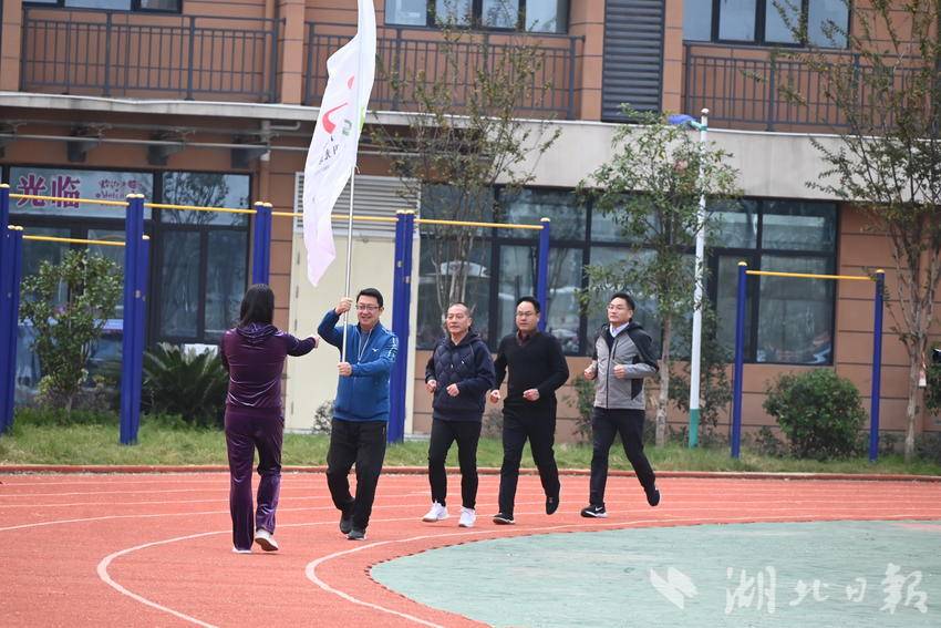 在备受瞩目的“大体育”会旗接力环节,四十八中学校长贾俊作为关键一棒的承接者,稳稳从兄弟学校手中接过旗帜。这一棒,象征着樊城教育从特色拓展进入“融合与升华”的新阶段,也标志着四十八中在“健康第一、立德树人”和“以体育人、全面发展”的征程上迈出了更为坚实的步伐。