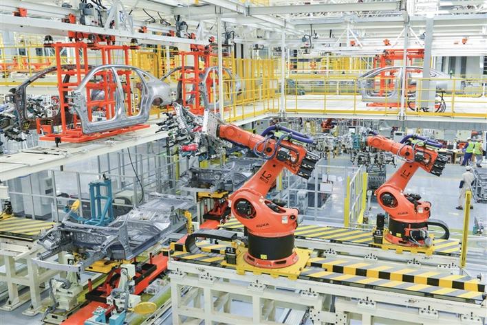 在新质生产力的驱动与引领下,猇亭企业正从“制造”加速向“智造”转型。在广汽传祺宜昌工厂焊装车间,机械手臂上下翻飞,500多台工业机器人各司其职,正在上演从螺丝钉变成汽车的神奇魔法。作为“工业4.0”智能制造标杆工厂,广汽传祺宜昌工厂单线最快可达到每52秒下线一台高品质新车。