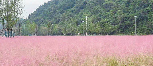 粉黛子草为河畔点缀出浪漫的粉霞。(受访单位供图)