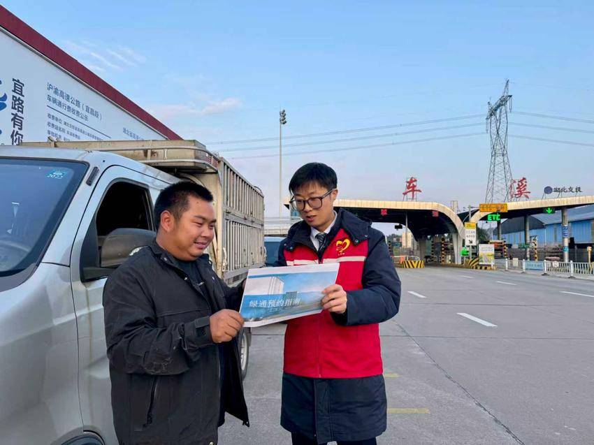 近日,湖北交投宜昌运营公司车溪收费站“爱路-AiLu”志愿者化身政策讲解员,以“面对面讲解、手把手教学”的方式,将鲜活农产品运输“绿色通道”政策精准送到司乘身边。志愿者们精心准备了绿通车预约流程图,结合实际案例,对“农产品减免范围(如柑橘、蔬菜等各类鲜活农产品的具体品类)”“预约流程(从线上平台注册、信息填报到获取预约凭证的每一个步骤)”“装载要求(容积利用率、混装比例等细节规范)”等司乘最关心的核心问题进行了深入浅出的一一解答。同时,志愿者还现场演示了预约操作的具体步骤,让司乘人员直观清晰地掌握预约方法,确保这一惠民政策红利人人知晓、人人会用。