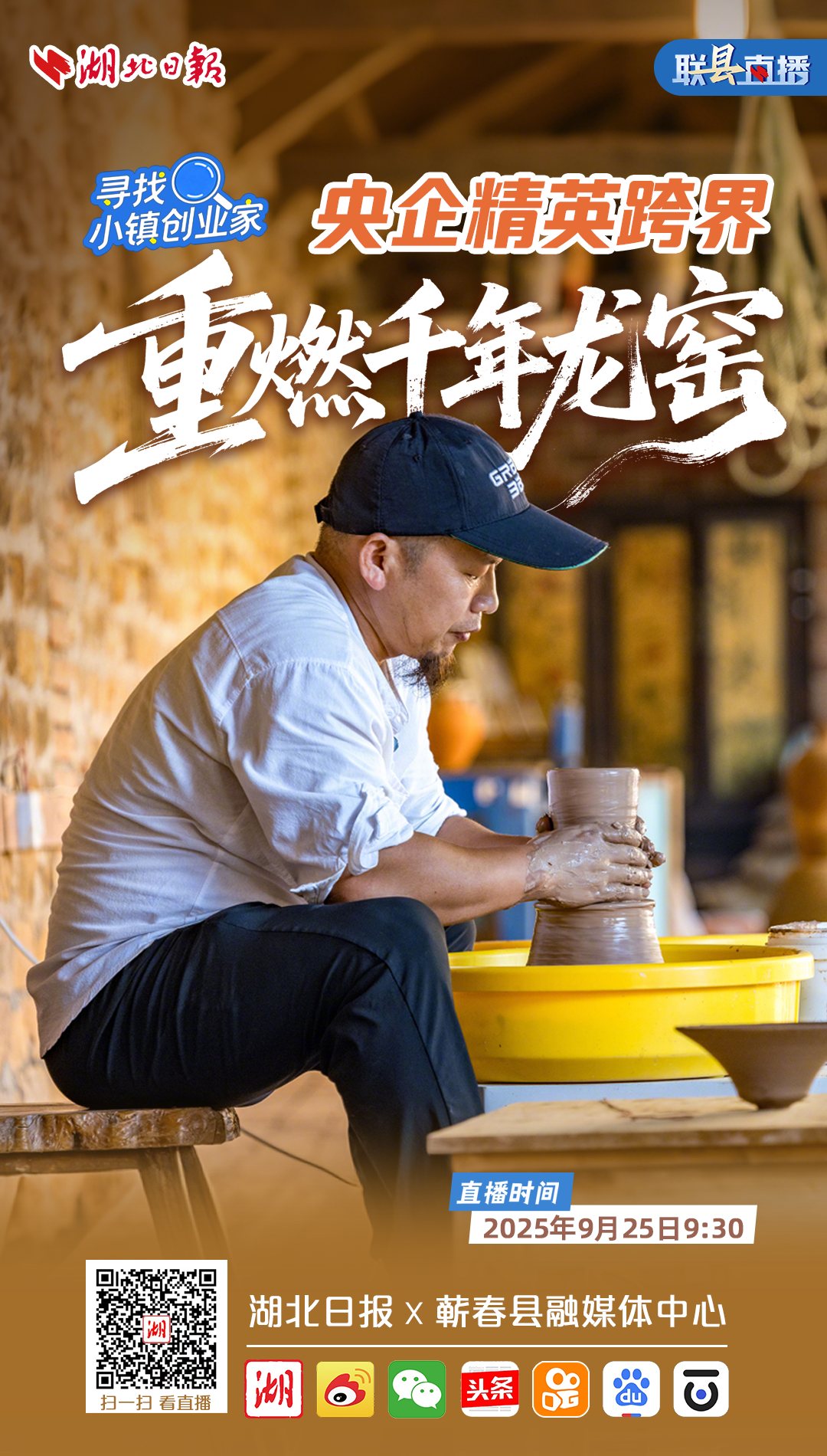 9月25日9时30分,湖北日报联合蕲春县融媒体中心,带领广大网友走进蕲春县管窑镇,看陶瓷博士高全军如何让龙窑柴烧成为艺术品,一起领略千年龙窑的非遗魅力!