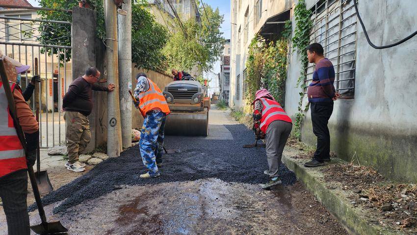 为切实解决群众“急难愁盼”的问题,社区两委多次实地调研,广泛征求居民意见,最终确定改造方案。施工过程中,社区严格把控工程质量,组建专项监督小组全程跟进:施工团队先对原有破损路面进行破除清理,采用重型压路机分层碾压路基,确保地基坚实稳固,从根源上避免路面后期沉降;随后铺设两层沥青面层,完成路面“刷黑”,同时同步完善道路两侧排水设施,有效解决雨水积存问题。
