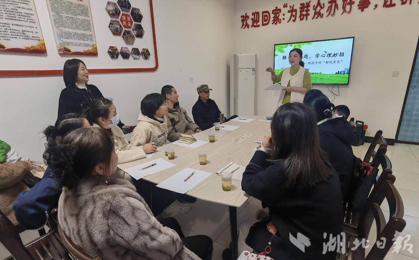 湖北日报客户端讯(通讯员 鲜于开敏)为破解家长在家庭教育中面临的亲子沟通不畅、育儿困惑难解等问题,凝聚家校社协同育人合力,10月22日晚,以“解亲子难题,学心理妙招——做孩子的‘解忧家长’”为主题,陆城红春社区携手陆逊中小学在民俗村“家+”驿站开展家庭教育专题讲座,现场15位家长参加。