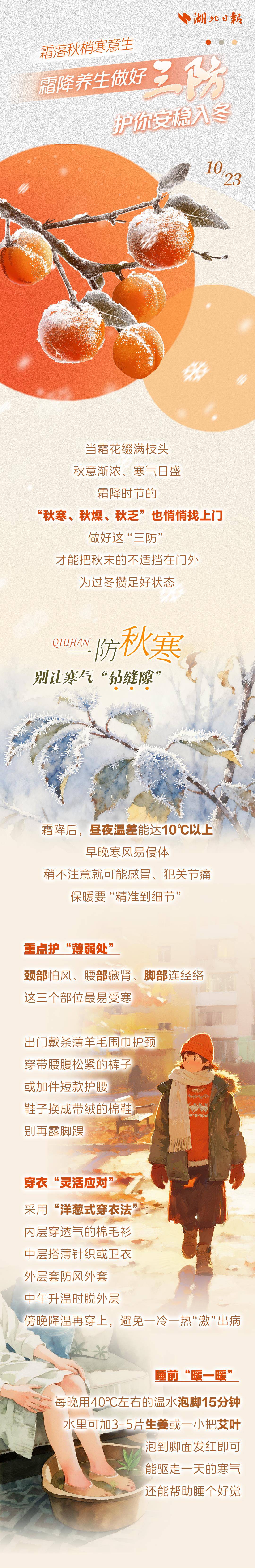 霜落秋梢寒意生 霜降养生做好三防 护你安稳入冬