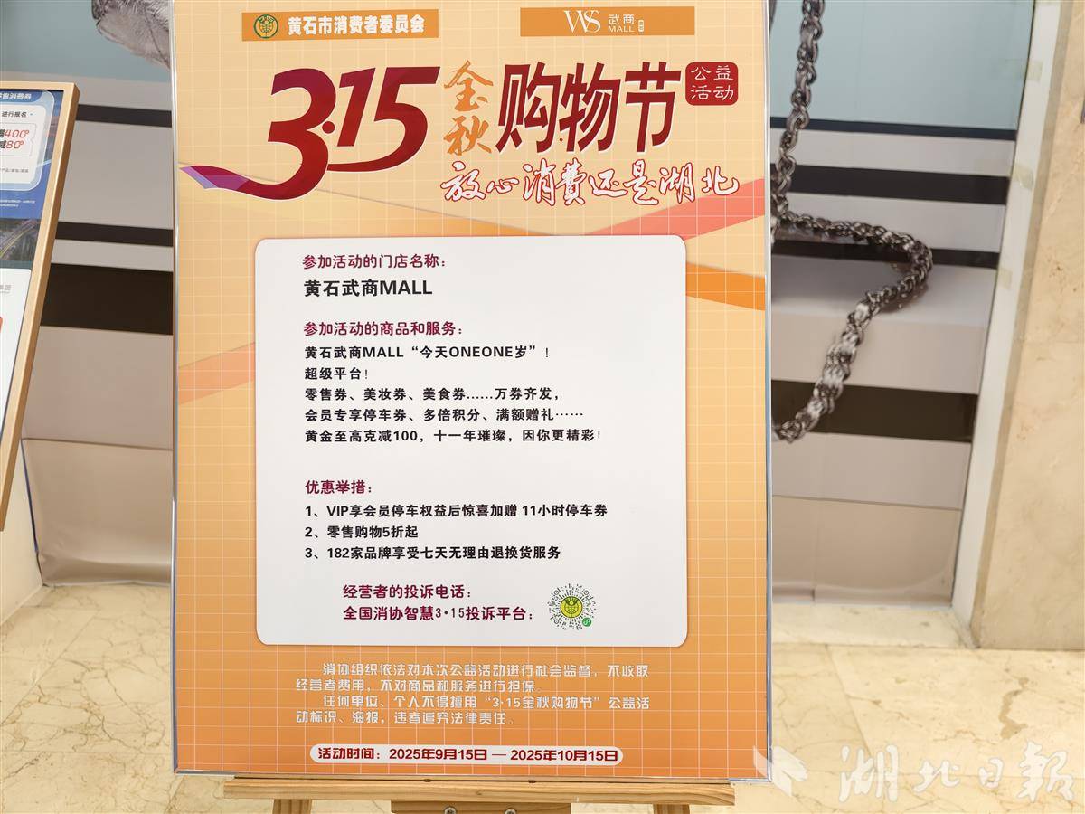这个金秋,黄石市民的购物热情被一场诚意满满的消费盛宴彻底点燃。9月15日至10月15日,黄石市2025年“3.15金秋购物节”公益活动如火如荼开展,以“诚信消费”为核心,联合行业协会、核心商圈和重点企业,打造了一场“能逛、能玩、能薅羊毛”的消费嘉年华。