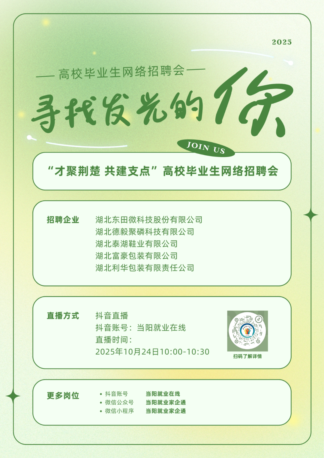 当阳市2025年“才聚荆楚 共建支点”高校毕业生网络招聘会