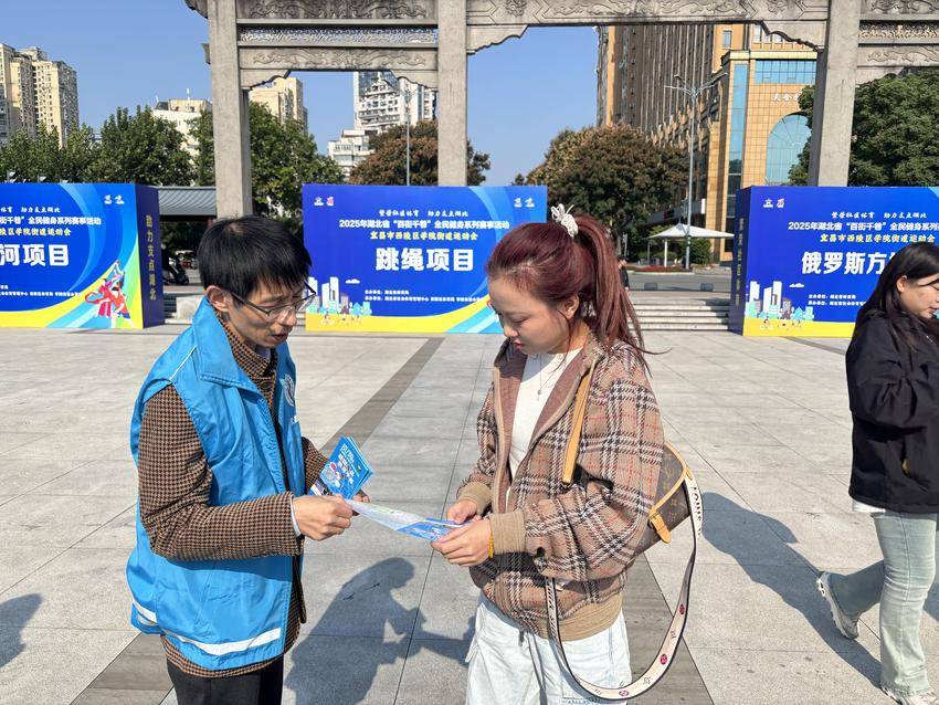 湖北日报客户端(通讯员谭靖、 段美铃)10月23日,2025年湖北省“百街千巷”全民健身系列赛事活动在宜昌市西陵区滨江公园双亭广场火热开展。此次活动不仅是选手们展示运动风采的舞台,也成了一堂生动的“户外禁毒课”。