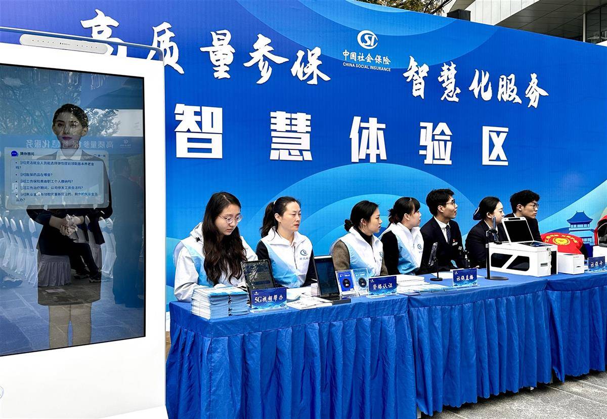 活动现场,市民还能体验AI智能客服、5G视频帮办、资格认证“碰一下”、工伤VR场景等智慧服务。在智慧体验区,工作人员正在引导现场市民与AI智能机器人对话。“AI终端支持语音交互,可快速反馈参保流程与所需材料,市民办理社保更加精准快捷。”社保讲解员祁晓业说。