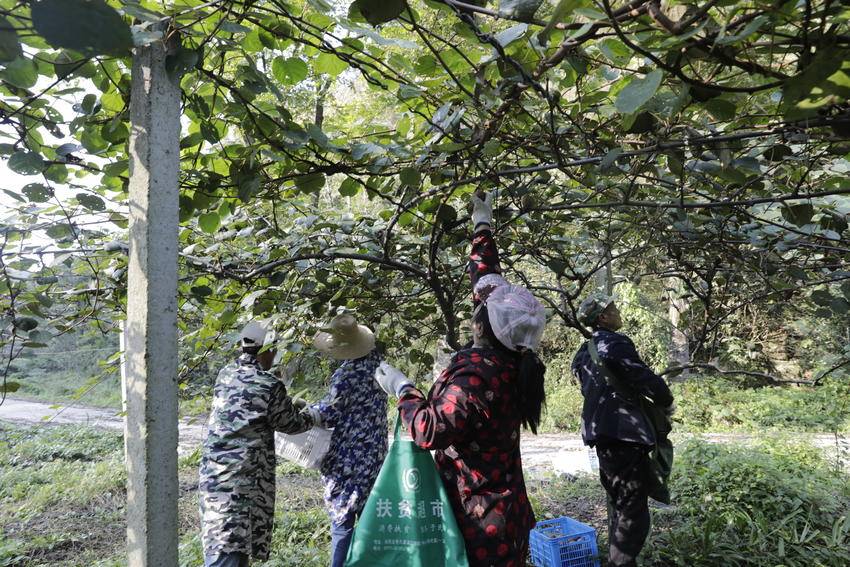 10月23日,猕猴桃基地开园采摘,当地果农穿梭于藤蔓间,忙着挑选、采摘成熟的猕猴桃。在厚丰农业开发有限公司,村组干部同果农一道将猕猴桃分拣装箱,装袋销售,一片繁忙。