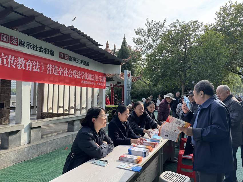 湖北日报客户端讯(通讯员汪小玲)为深入学习贯彻《中华人民共和国法治宣传教育法》,切实营造全社会尊法学法守法用法良好氛围,10月22日下午,西陵区西坝街道办事处在西坝长江生态法治公园开展《中华人民共和国法治宣传教育法》专题普法宣传活动。