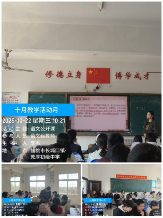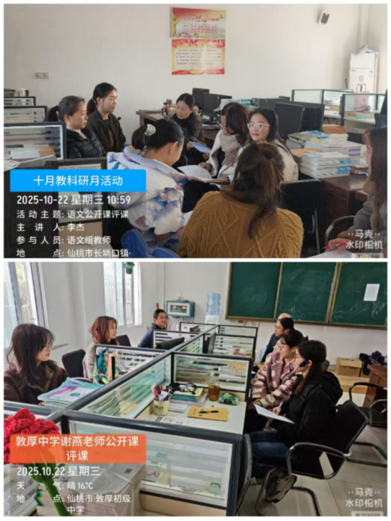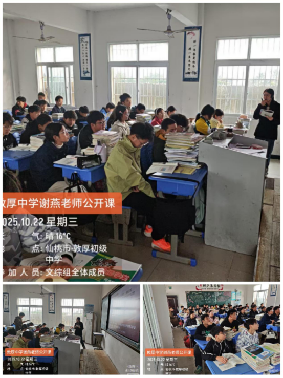 湖北日报客户端讯(通讯员徐子璎)教而不研则浅,研而不教则空。10月22日,敦厚中学青年教师李杰、谢艳分别完成《藤野先生》《延续文化血脉》示范课,学校教务处组织语文组、文综组及跨学科教师参与听课,并在课后开展集中评课研讨,以课堂为基、以研讨为翼,推动教科研成果落地课堂。