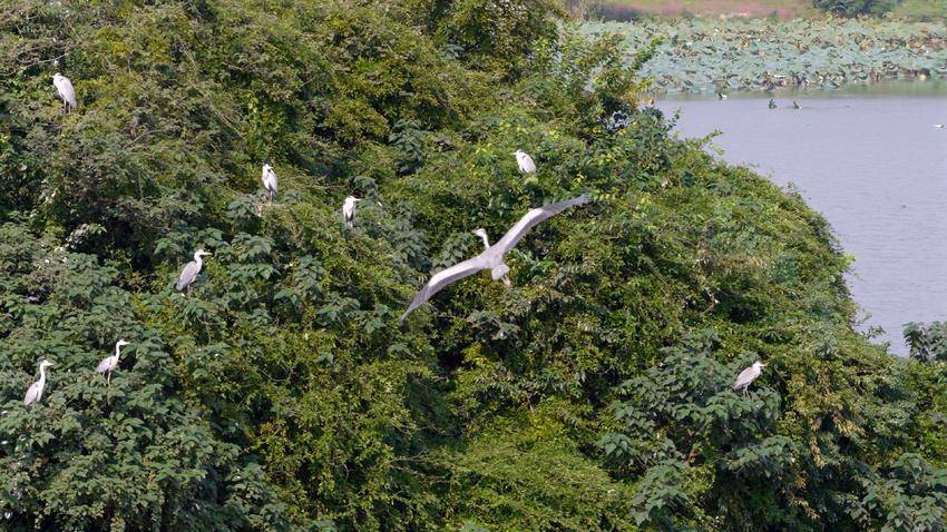 湖北枝江:金湖国家湿地公园鸟儿扎堆晒太阳,画面太美!