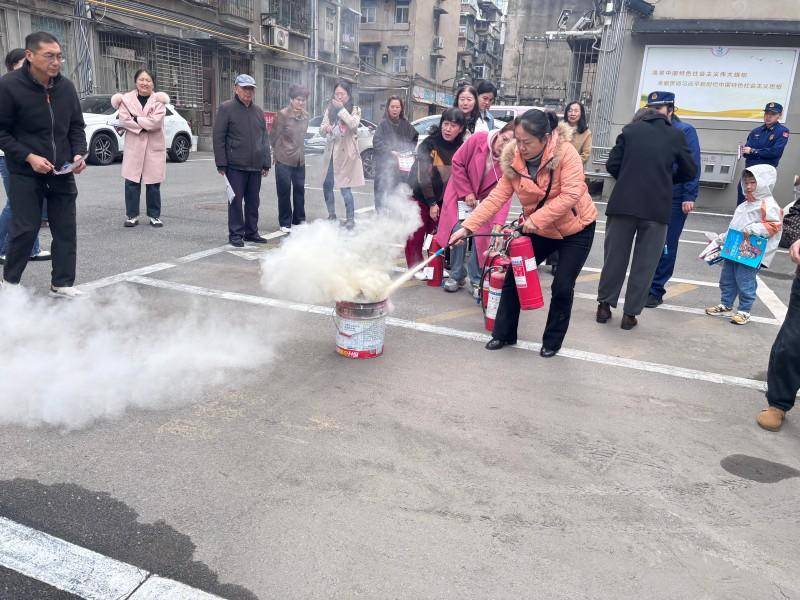 演练现场,消防宣传员结合住宅小区的特点,采用通俗易懂的语言讲解了防火基础知识、灭火器的操作、正确扑救初起火灾和火场自救逃生的方法。现场指导物业管理人员以及居民亲手实践了灭火器、消防水带的操作方法,通过具体操作,掌握了实用的灭火技能。同时,消防宣传员提醒小区业主,不要将电动自行车推进楼内停放和充电,特别是在住宅楼内,此类火灾一旦发生,火势蔓延迅速,对居民生命财产安全将构成严重威胁。