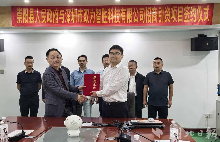 在考察专门从事人工智能机器人研发生产的深圳市双为智胜科技有限公司,与专注于工业固态存储器解决方案与产品制造的深圳市安信达芯片科技有限公司时,徐望一行与企业方分别就在崇阳投资建设AI人工智能机器人项目及高端存储芯片项目充分沟通交流,最终达成共识,并现场签订投资协议。两个项目计划总投资2.2亿元,将进一步推动崇阳县光电子信息、智能制造产业集聚和结构升级。