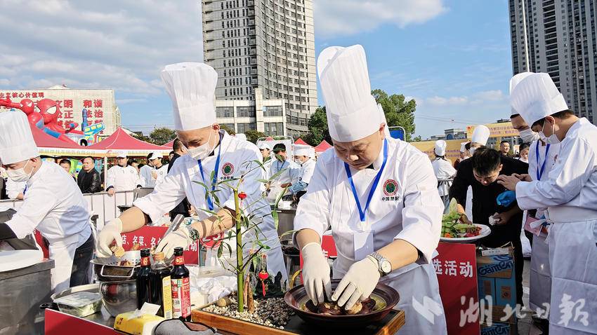 “这是我们崇阳的一道本土特色菜,雷竹笋炖腊猪脚,我们把桂花泉镇的雷竹笋,高枧乡的腊肉相结合,鲜腊碰撞,寓意着炖出日子鲜醇、岁岁安康的好兆头。”楚味轩厨师舒伟介绍说。