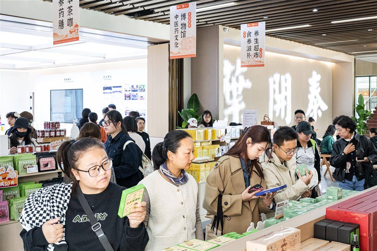 10月24日,位于武汉市汉阳区的叶开泰中医药博物馆养生超市内人头攒动,市民挑选着叶开泰出品的食养药膳等创新产品。当日,叶开泰中医药博物馆历经一年改造后全新亮相。改造后的博物馆既延续了老字号的历史底蕴,也展现出跨界转型的现代魄力,成为武汉市民文化体验的新地标。