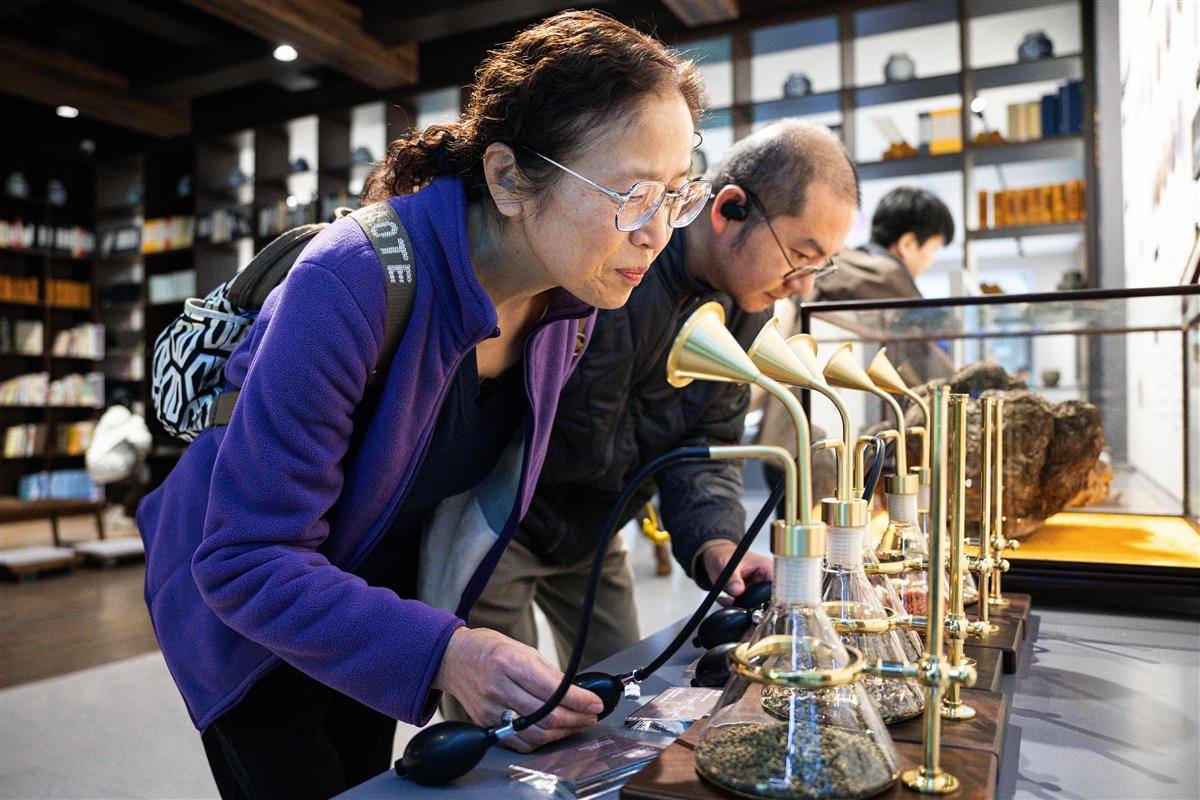 10月24日,市民在叶开泰中医药文化博物馆感受中草药的气味。