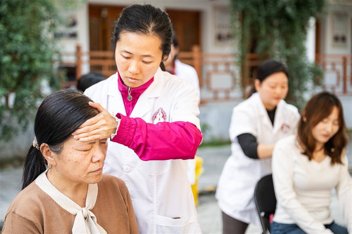 10月24日,市民在健民叶开泰国医堂(汉阳旗舰馆)外治体验区体验推拿。