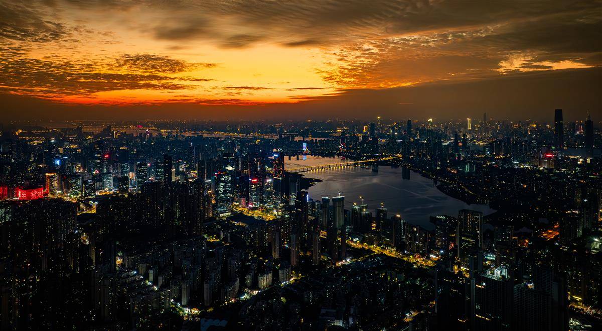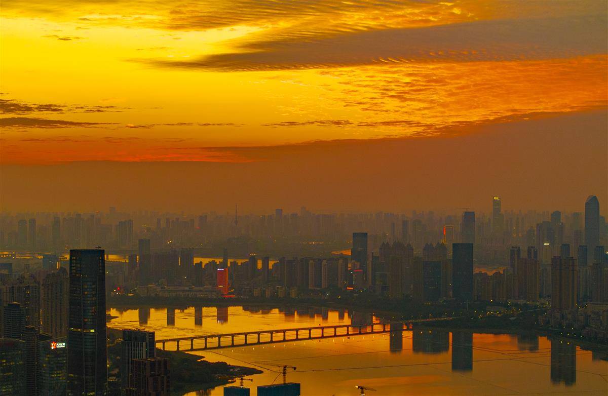 10月24日傍晚,武汉上空现绝美晚霞。(湖北日报全媒记者 柯皓 摄)