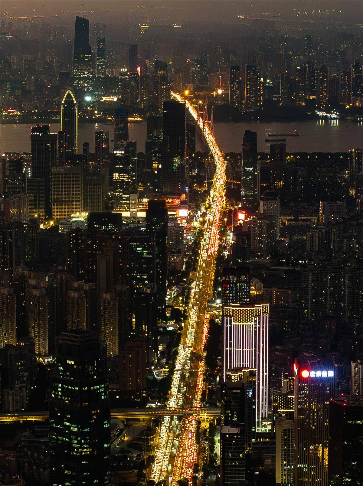 10月24日傍晚,武汉主干道上车水马龙。(湖北日报全媒记者 柯皓 摄)