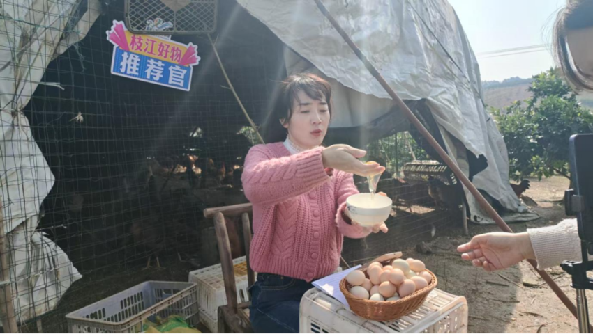 “这里的鸡都是跑山鸡,放养的.....”三农达人、阳光宜品电商培训导师“灵枝”在直播间向网友们推介着。