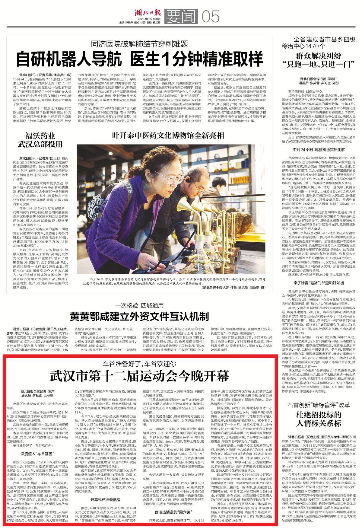 10月25日,湖北日报要闻版报道:武汉市第十二届运动会今晚开幕