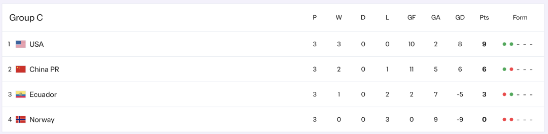 在本组另一场比赛中,美国队5比0击败挪威,三战全胜头名出线。根据赛程,中国队将在1/8决赛中对阵A组第二。目前A组出线形势尚存悬念,意大利与巴西大概率锁定前两名,两队将于明日凌晨直接对话决定最终座次。