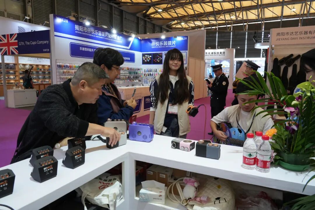 在另一旁的伊司地曼公司展区,一款标价18.8万元的高端手工木吉他吸引了不少参观者的注意。该乐器由拥有50年制琴经验的美国工匠制作,展现了企业在高端产品线上的技术实力。火爆的市场也体现在数据上,仅展会前两日,经销商意向订单金额已突破百万元,现场零售额也超过30万元。