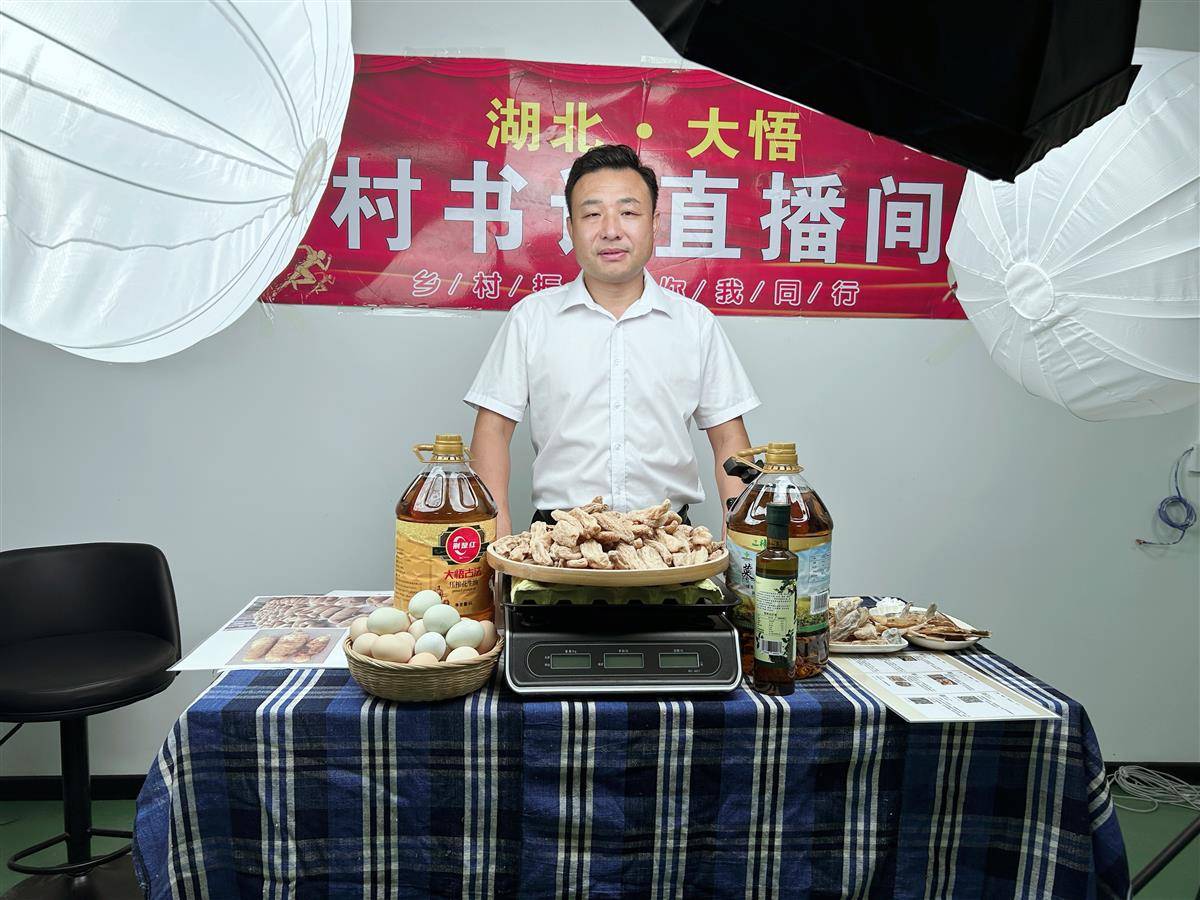 一次入户走访,看到村民周双义的大米、聂明双的瓜子等土货无人问津,聂建军心想,“不能让乡亲们用汗水换来的成果烂在地里!”他开始为土货谋出路。2024年10月,他注册“花桥村小眼书记”抖音账号,用旧手机、三脚架搭起简易直播间。他研究平台规则、研读直播书籍、模仿优秀主播修改脚本,把农户劳作场景、产品加工过程搬进镜头,让观众直观看见“大山里的真材实料”。为不耽误村务,他和同事利用双休日和下班时间直播,身兼主播、客服、收货员、发货员等多职。