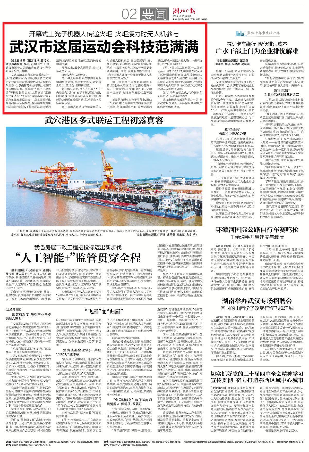 10月26日,湖北日报头版大图、二版头条报道:武汉市这届运动会科技范满