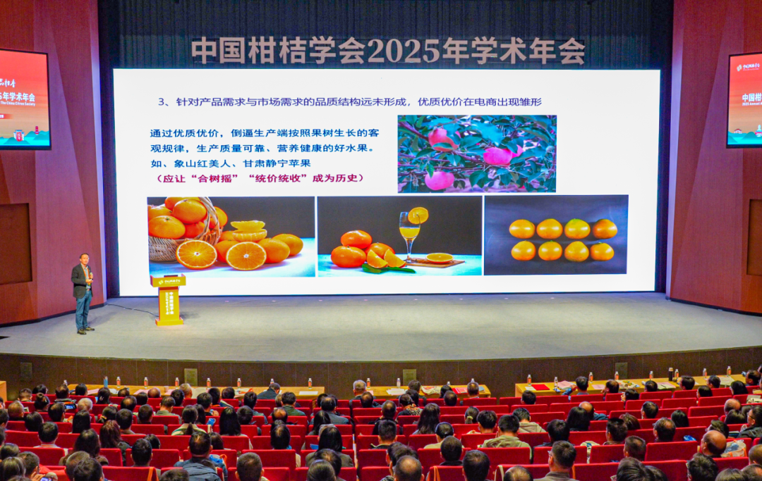 开幕式上,宜昌市政府副秘书长王磊作宜昌市柑橘产业情况报告。中国柑桔学会2025年学术年会特邀西北农林科技大学教授马锋旺、华中农业大学教授伊华林分别作主题报告。