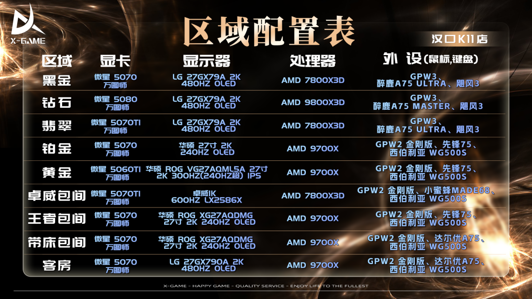 钻石区域则主要配置5080的显卡,LG OLED 27寸480HZ高刷显示器,专业级磁轴醉鹿键盘,GPW3代鼠标,为玩家带来极致操作体验。除了硬件配置,场馆还积极承办线下赛事活动,致力于打造专业的电竞氛围。