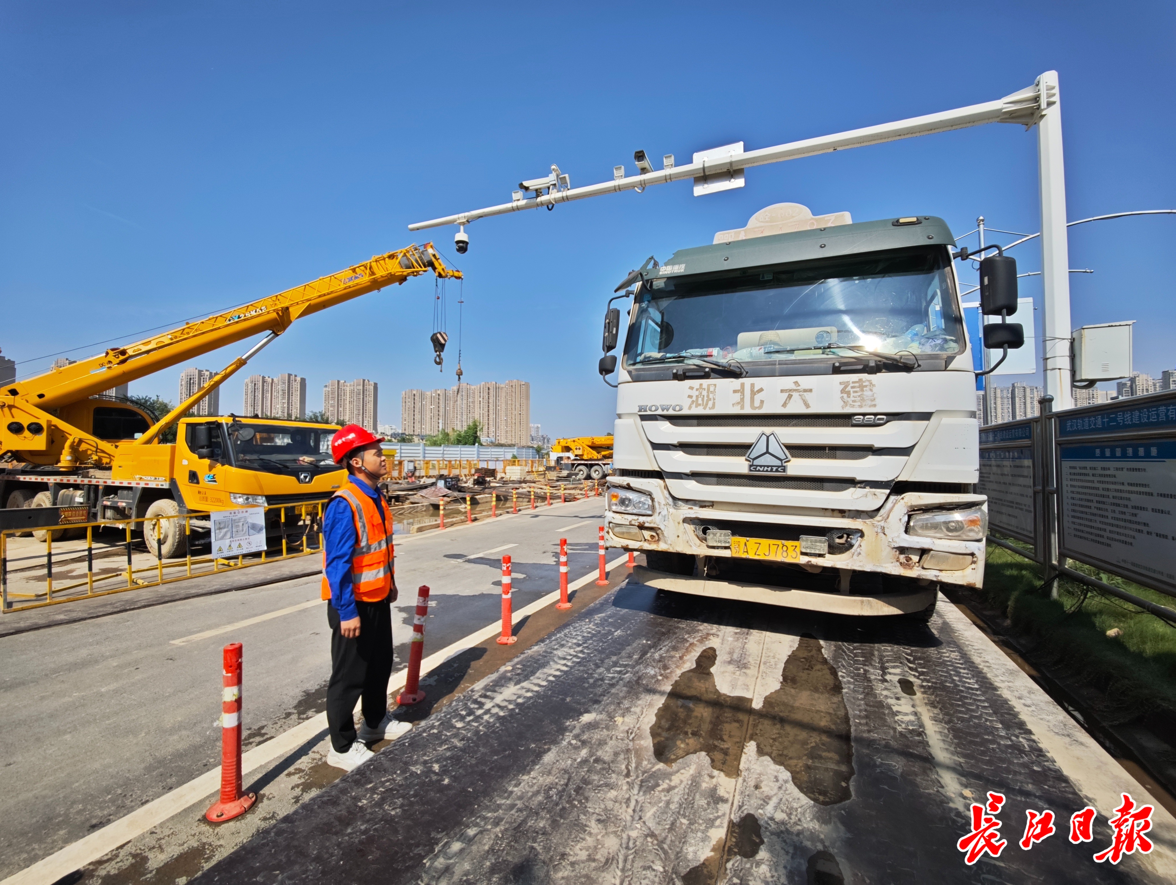 在地铁12号线5标段项目部,施工方订购的混凝土在智能地磅上称量重量。 记者宋磊 摄