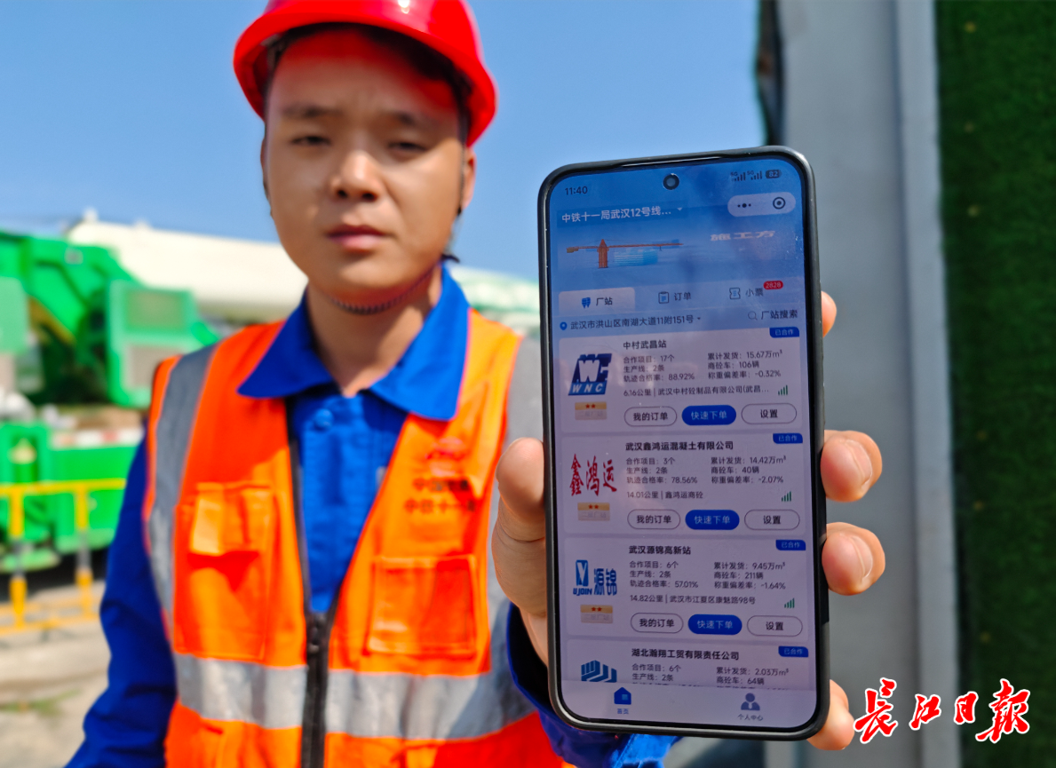 长江日报大武汉客户端10月25日讯 “昨天订购的混凝土马上就要送到了!”10月23日上午10时许,在地铁12号线5标段项目部内,项目物资部长戴威掏出手机,点开“天工云砼”小程序查看。果然,几分钟后,送货的混凝土车就来了。“天工云砼”是由在汉央企中建三局自主研发的商砼产业互联网平台,让混凝土订购如同点外卖一般方便。