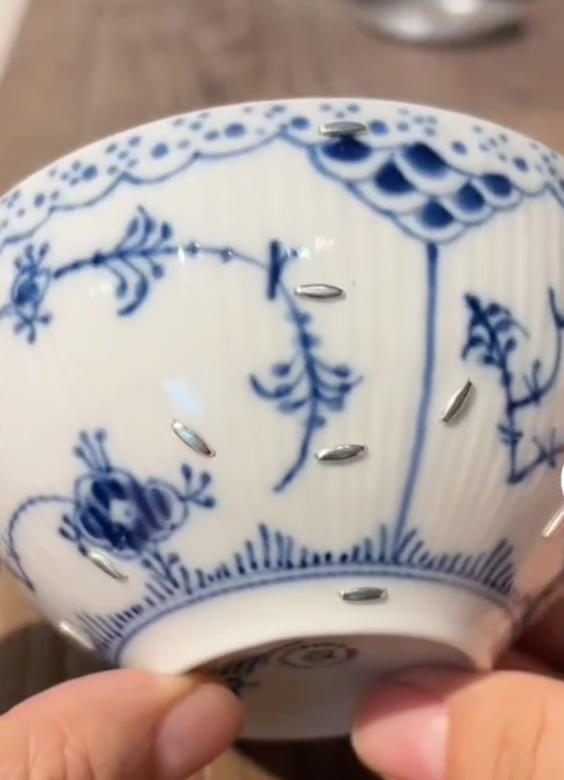 长江日报大武汉客户端10月25日讯(记者许魏巍)对自己意义重大的茶杯,不小心摔成两半怎么办?这事难不倒做瓷器修复的程思敏,她能通过锔瓷手法,将金属钉钉到茶杯上,使茶杯恢复正常功能,还可以在茶杯受损处镶嵌上精美的银制图案,让茶杯焕发新生。