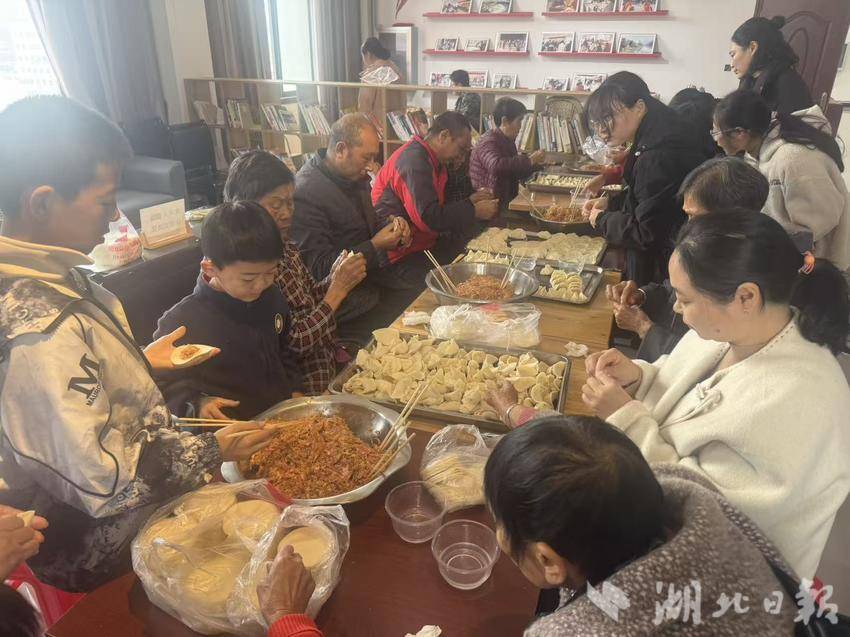 最后,活动在“亲子包饺子”的欢声笑语中推向了高潮。大家围坐在一起,分工协作,其乐融融。老人们展示着熟练的包饺子技艺,孩子们也兴致勃勃地学着包饺子,虽然形态各异,但每一个饺子都饱含着幸福与团圆的味道。当热腾腾的饺子出锅,大家品尝着自己的劳动成果,脸上洋溢着满足与幸福的笑容。