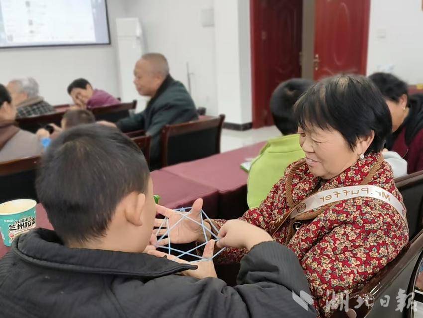 活动在充满怀旧气息的“翻花绳”游戏中拉开序幕。彩色的棉线在爷爷奶奶的指尖灵巧地翻飞,勾、挑、翻、绕,变幻出“面条”“大桥”“降落伞”等各式花样。老人们仿佛搭乘时光机回到了童年,眼中闪烁着孩童般的光彩,耐心地向孙辈们传授着技巧;孩子们睁大好奇的眼睛,在祖辈手把手的教导下,学得有模有样。在一挑一翻间,感受着跨越时代的童真乐趣。这一刻,一根小小的翻花绳,不仅连接两代人的童年,更串联起了跨越数十年的欢乐与记忆。